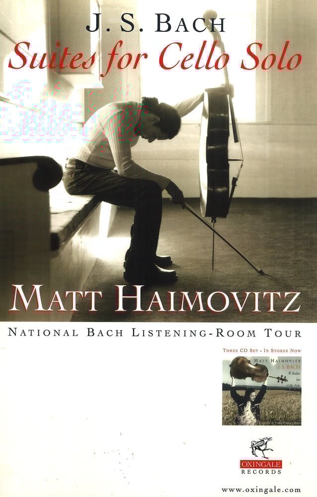In 2000, cellist Matt Haimovitz made waves with his Bach “Listening-Room” Tour, for which, to great acclaim, he took Bach’s beloved cello suites out of the concert hall and into clubs across the U.S., Canada, and the U.K.